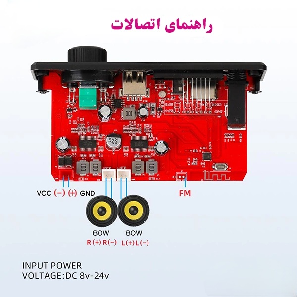 ماژول پخش MP3 PLAYER پنلی بلوتوثی با آمپلی فایر 2X80W مدل JX-X1